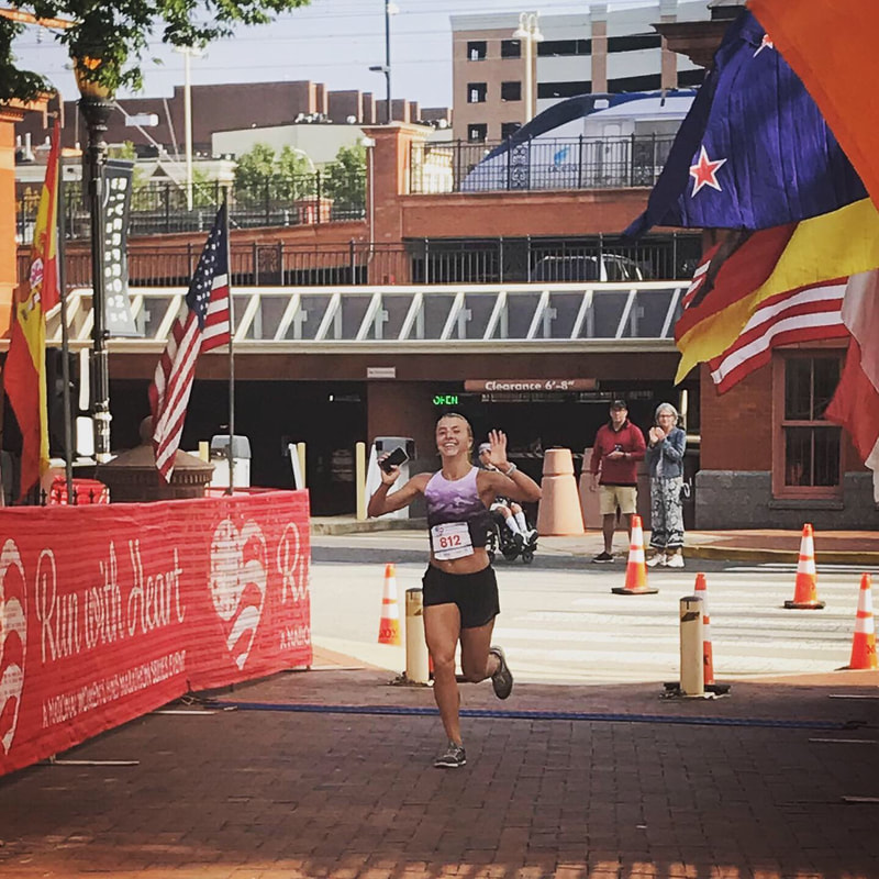Hundreds and hundreds of women running, jogging, and walking past me as I made my way to mile 7, then 8, then 9, and so on. And EVERY. SINGLE. WOMAN. showed their positivity, support, and love. Handfuls of women shouting “good job,” “you rock,” “you’re representing us women!” It was unbelievable. The smiles. The high fives. The happiness. The entire second half of the race flew by in an instant; before I knew it I was at mile 12. Unfortunately, my name is Amy Haas, and sometimes, I can be a bit of an airhead. Mile 12.5. ALMOST DONE. SO FREAKING CLOSE….and.. GUESS WHAT? I WAS IN SECOND PLACE. I had passed the woman in front of me around mile 10 and was about 100 feet in front of her as we approached the final half mile. But, of course, just like in Kentucky; I took the wrong turn. I started running down the path that we had taken at the beginning of the race, the place where we had turned from the city roads to the bike path initially. For a few seconds I was relieved to be so freaking close, until the woman behind me informed me that I was, “GOING THE WRONG WAY” …. unfortunately she waited until I had gone approximately 100 feet in the wrong direction. She ended up passing me up during my little mishap. But. You know what? WHO CARES. I FINISHED THE RACE IN THIRD PLACE AND BEAT MY PERSONAL BEST TIME-WISE. I was elated as I waved to my mom and ran through the finish line.
