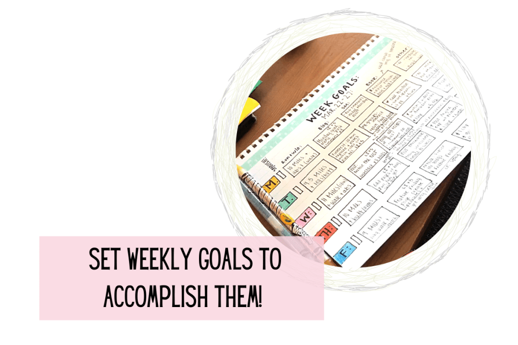 To actually make sure that I stay on track towards accomplishing my monthly goals – I use weekly goals! Check out this blog post: WEEKLY GOAL SETTING – to set some weekly goals each week to help you CRUSH those September goals!