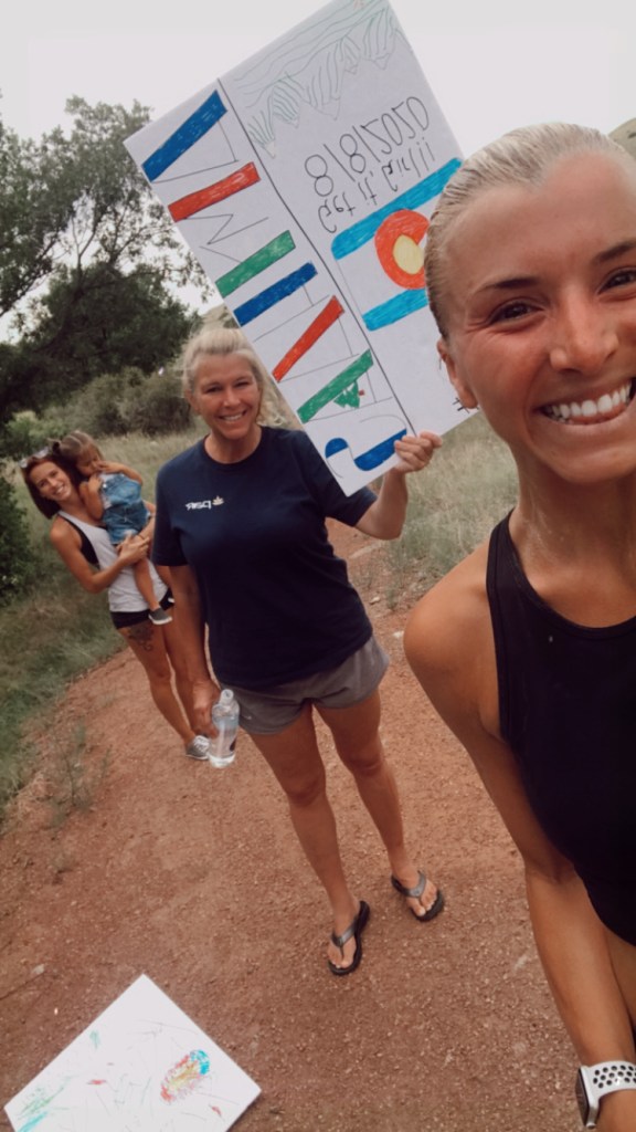 After two back-to-back half marathons in Iowa and Nebraska – I WAS FEELIN’ IT during the car-ride to Colorado. But thankfully I had a reason to keep the excitement high throughout the drive – because I was driving to the airport to pick up my mom, sister, and niece!! They would be celebrating state #33 with me in Colorado Springs, and I could not WAIT to see them! So off I went – a straight shot (literally, stayed on one highway the entire way) from Topeka, Kansas to Colorado Springs, Colorado!!