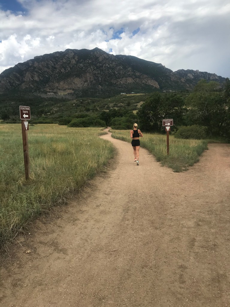 So there we were, at 9 a.m… the Colorado sun growing hotter and hotter by the second… searching for a damn trail for me to run. There we were… driving around… searching for another trail… and finally we came across “Cheyenne Mountain State Park.” I had no idea what the trails were like, no idea how long each trail would be, no idea what the elevation would be like, no idea WHAT TO EXPECT – but, I hopped out of the car, and started running anyways. IT. WAS. TOUGH. Nearly 100 flights in hills, over 1,000 feet in elevation, uneven terrain, and the 10 a.m. summer sun glistening across my face the entire time. But it was BEAUTIFUL. In the distance you could see the mountains, and a few times I even found myself up so high that I could look down upon the world below. BUT AGAIN. IT. WAS. TOUGH. I found myself with that familiar, “I don’t know if I’m going to be able to finish,” feeling that I used to get years ago. I found myself stopping to do a weird, ugly, slow-jog/walk several times. I found myself making excuses in my head about everything. And that’s okay. Each and every race is different – and you know what? This HARD race is exactly what will someday make some race seem “easy.”