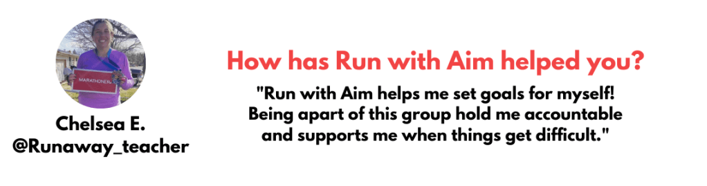 In the Run with Aim group – we believe goals come in ALL shapes & sizes – you can choose to set goals in ANY area of your life: running, strength, nutrition, hydration, or anything else you can imagine!